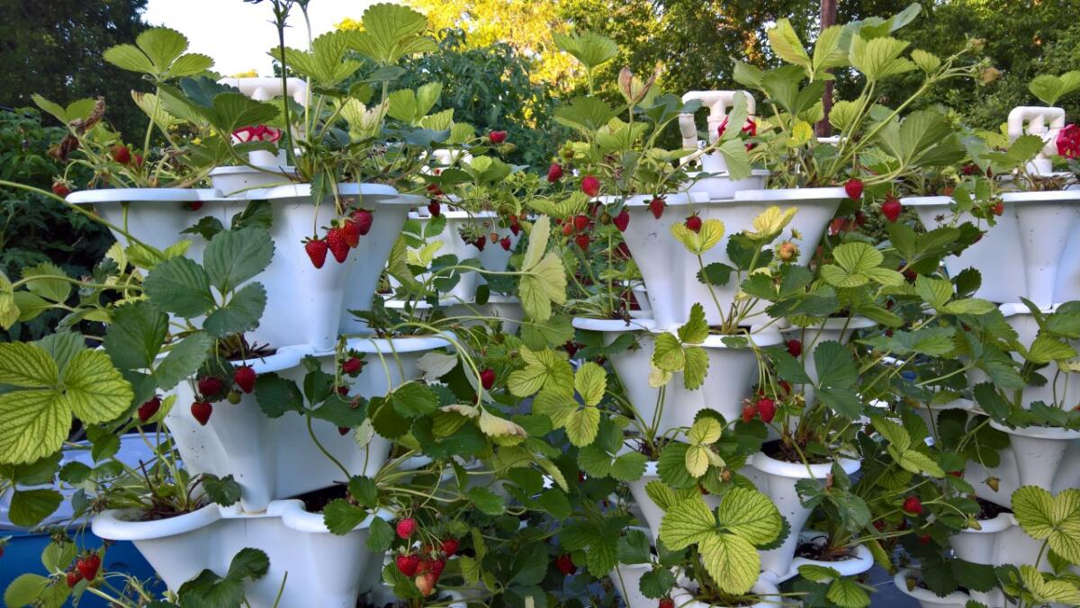 The EzGro Backyard Garden system is designed to maximize your growing potential by combining the space-efficiency of vertical gardening with the technology of a customized hydroponic system. In any of the EzGro Backyard Garden models, the towers are constructed of sturdy conduit, which our stacking Quad Pots are slid onto. The towers are connected at the top and bottom to form a stable interlocking stack. Black poly drip-line is strung at the top of the system to provide the nutrient-enhanced water to the top Quad Pots in the system at timed intervals, so the plants receive just as much as they need. The solution then drips down through the lower Quad Pots, and any unused solution is then collected back into the reservoir for re-use, completely avoiding waste. For more information on strawberries follow me.