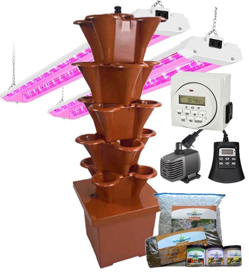 The EZ GRO Patio Garden is a sustainable, eco-friendly soil-less Vertical Garden system that sets up fast, less than an hour and gets you growing in no time. The attractive stacking pots allow you to grow 100-400 plants- all you need is sunshine, water for the reservoir, and an electrical outlet.