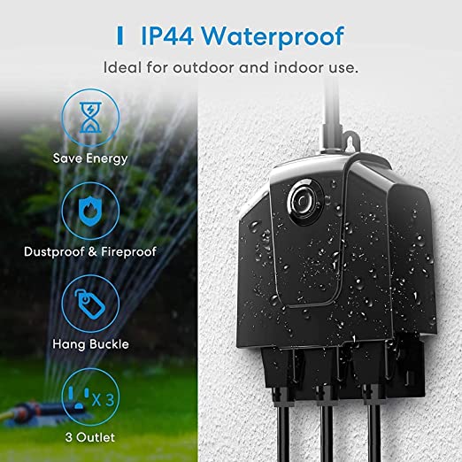 IP44 WaterproofIP44 weatherproof housing and sockets cover. Making the outdoor smart plug ideal for Garden, Christmas tree, Landscape lighting, Bathroom, Porch, Balcony, Sprinkler, and other outdoor or indoor-use electric appliances. |